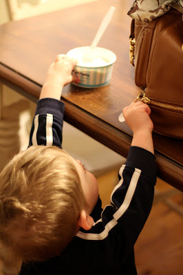 Dessert from Maggie Moos. Someone especially liked this part, and couldn't keep his hands off (or out of) the ice cream.
